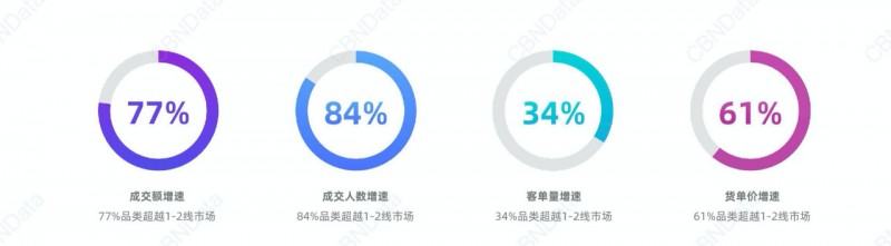 当然,小镇青年的强大消费力“被看见”,不仅仅体现在其不断增长的人数规模上和购买力上,更表现在他们更泛的消费品类选择、更快的消费成交金额增长以及更勤剁手的习惯特点中。阿里妈妈《下沉市场洞察报告》显示,在这种消费力的推动下,聚焦淘宝天猫各品类的成交情况,有77%的品类在下沉市场的成交额增速超过一二线城市。