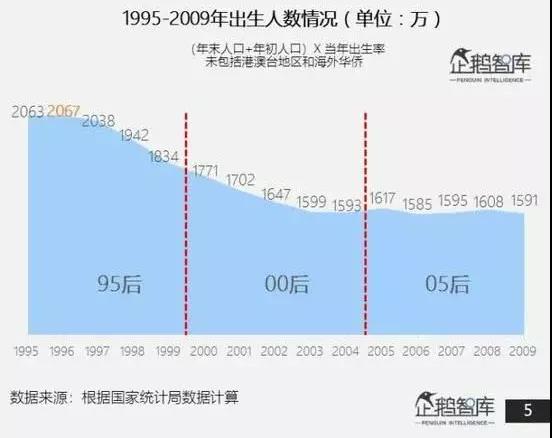 根据相关数据统计,Z世代总人数约为2.6亿,约占2018年总人口的19% 。其中95后约为9945万,00后约为8312万,05后约为7995万。