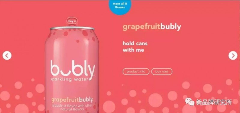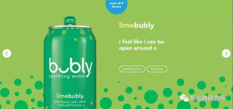 Bubly在包装上主打色彩,同时口味丰富,一共有8种口味,之前我们有分析过气泡水这个品类,是美国近几年增长比较快的细分品类,这里面的重要玩家除了雀巢、达能之外,还有初创型公司,包括Spindrift、La Croix以及可口可乐收购Topo Chico之后也进入到这个市场。