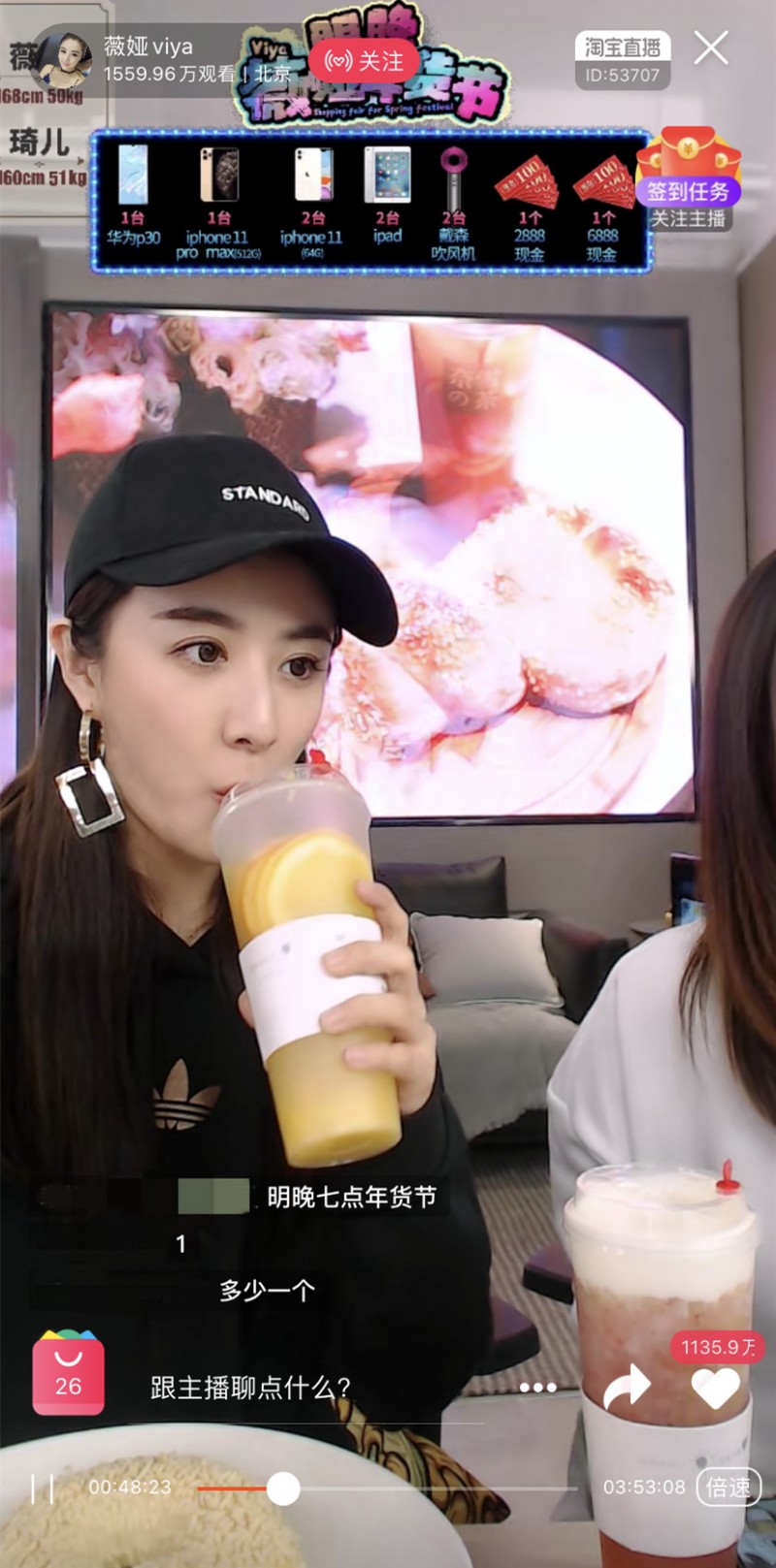 薇娅直播中试喝、推荐奈雪的产品