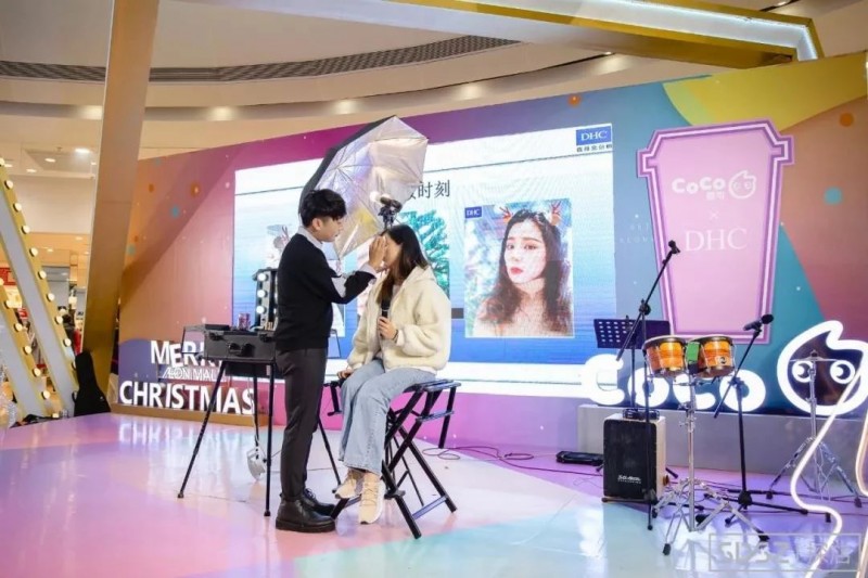 CoCo在苏州举办的产品分享会上,除了做饮品,还有DHC的化妆师进行现场彩妆教学。