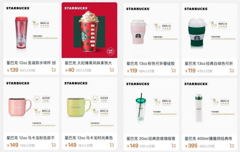 星巴克的淘宝旗舰店里,两种类型的产品都有