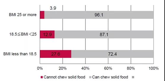 对固体食物有咀嚼问题的人体重指数(BMI)往往偏低。