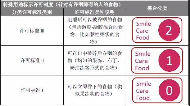针对为吞咽障碍的人提供的食物,在健康促进法案下,将特殊用途标示许可制度与分类相结合。