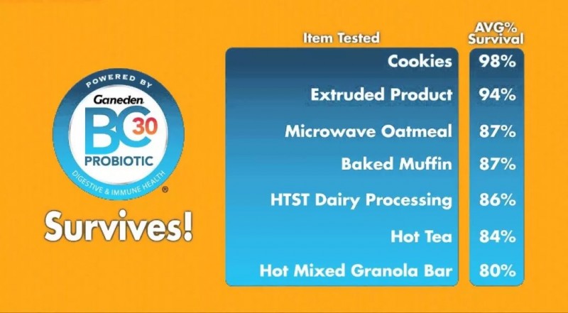 近年来,益生菌市场的一大重要进展是发现了可以形成孢子的益生菌,如GanedenBC30。通过极端条件下的“应激”反应来形成孢子,可以帮助菌种提高抗逆性,使它能比一般益生菌更能抵抗pH、热、冷和压力等极端条件。应用这些孢子,可以提高菌种在不同生产工艺下的成活率和在肠胃中的定植率,使它们更适合添加在日常的食品和饮料中来强化功能。