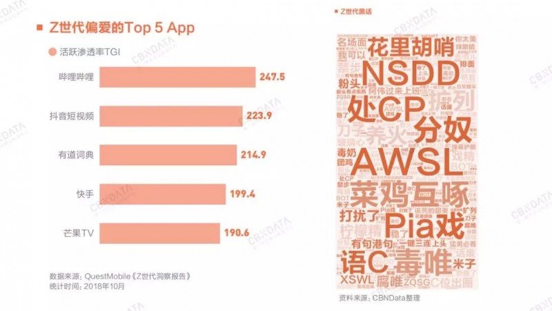 正如同每一届年轻人都有属于自己的社交平台以及语言体系,Z世代自然也有。以CBNData《报告》数据所示的最受Z世代喜爱的APP哔哩哔哩为例,你通过考试答题了没?其上“弹幕横飞”的Z世代黑话,你又懂几个?