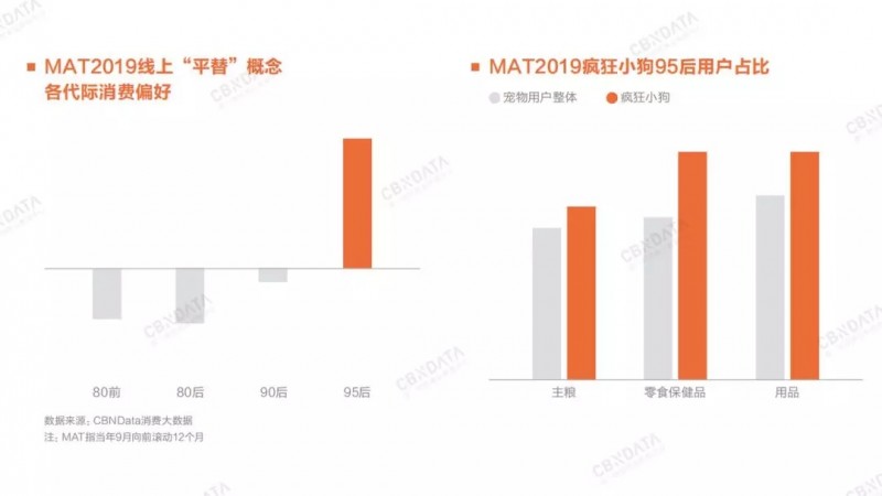 在95后中颇受追捧的“平价替代”消费观,突显了他们更重品质的消费特征。纵观正热潮的宠物经济,以疯狂小狗为代表的品牌,从极致性价比的定位出发,兼顾消费者情感化养宠、精细化养宠的需求,打出“好用不贵”的清晰定位。