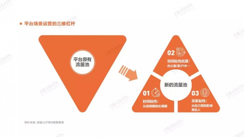 对于平台而言,如何获得持续性的流量“活水”,成为持续成长的关键,其本质是一场扩大用户需求密度的持久战,场景运营也因此成为核心。而场景运营的“空间”、“时间”、“关系”则成为“占领”用户心智的三大翘板。