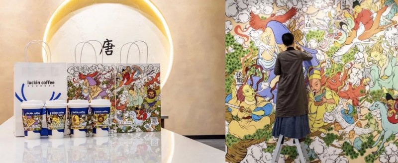(上图来自瑞幸官微,店内“饮中八仙图”)