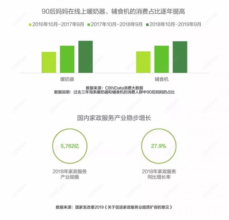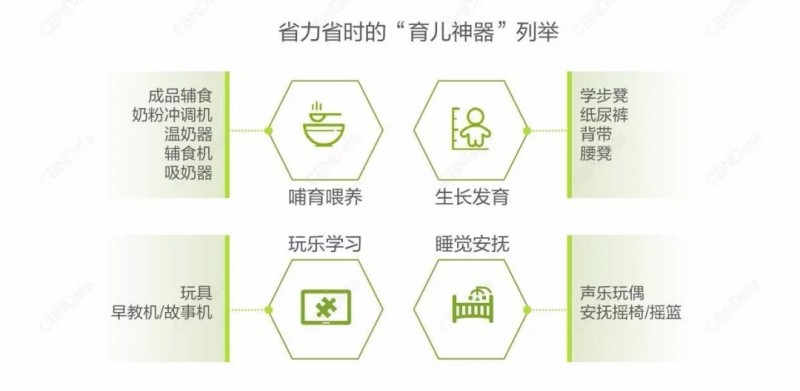 CBNData《白皮书》显示,有近九成新生代妈妈认可花钱买时间的理念,希望借助工具让自己从繁琐的育儿事宜中得以解放。