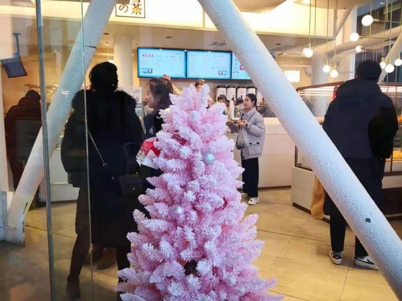 12月25日,这一天是圣诞节,中午的北京朝阳大悦城还未到达其最热闹的时点。我看到,奈雪朝阳大悦城店的门口正有人在拍照,拍照之后才是推门进店、点单等动作。此时的订单,自提外带的要占多数。