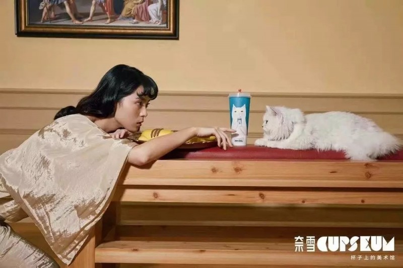 现在,和奈雪跨界合作过的品牌可以拉出一长串的名字,王者荣耀、腾讯PUPU、毕加索画展、亚朵,旺旺。甚至还有喵星人。7月30日,奈雪的茶推出“CUPSEUM杯子美术馆”,通过杯身展览艺术作品,并与艺术家Pepe shimada合作带来猫咪为主角的首展“Being a cat”,以此定制了六款手绘猫咪茶饮杯。