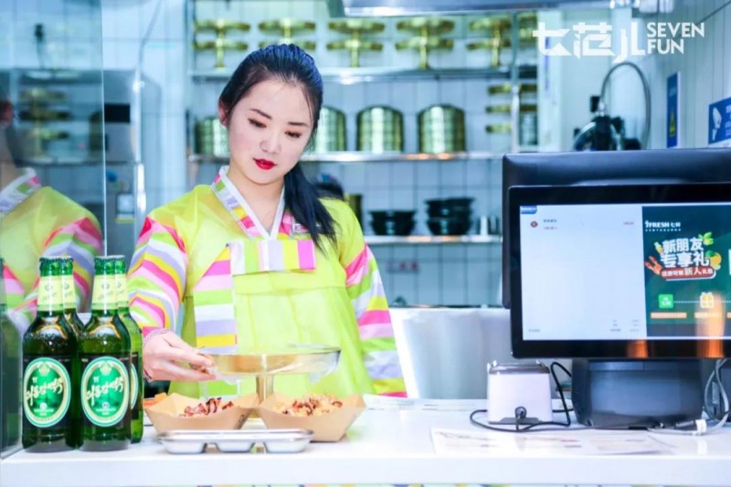 12月底,2019年结束前,京东7FRESH在5天内落地2个创新线下业态,12月20日在北京回龙观开业的「七鲜生活」是针对社区居民的社区小型超市。12月24日开业的「七范儿」(Seven FUN)则是针对白领办公人群的美食零售混合店。