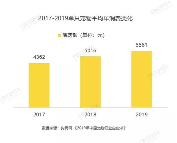 根据CBNData《2019宠物消费生态大数据报告》,中国养宠家庭已达9978万户,5年内同比增长43.9%。预计到2023年,我国宠物市场规模将超过4000亿元。而在宠物消费上,由于新生代群体对消费的升级和品质的要求,宠物主们对毛孩子的投入可谓“挥金如土”。据统计,我国单只宠物花费连续两年提升超10%。