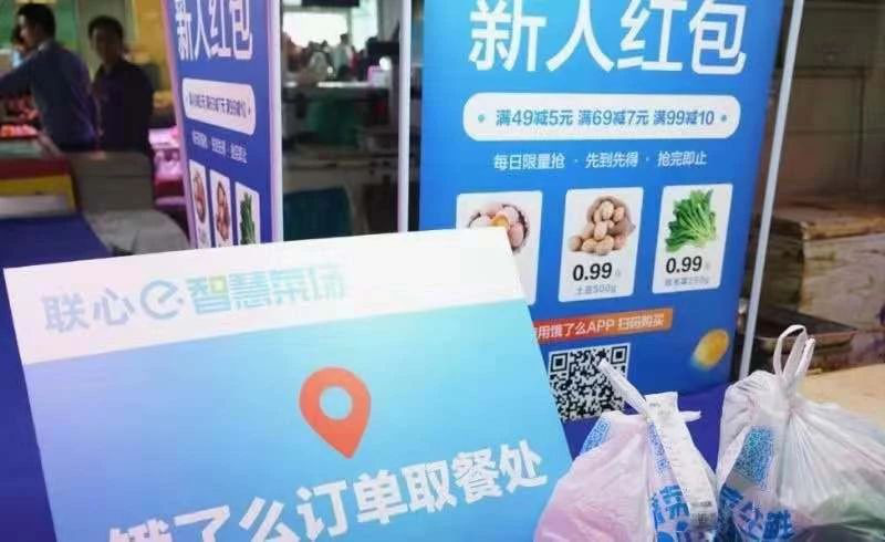 一个月前,联心菜场整体升级为了“联心饿了么智慧菜场”,附近三公里的居民可以在手机上用饿了么逛菜市场了。经历一个多月的试运营,1月7日,这个智慧菜场项目正式启动。