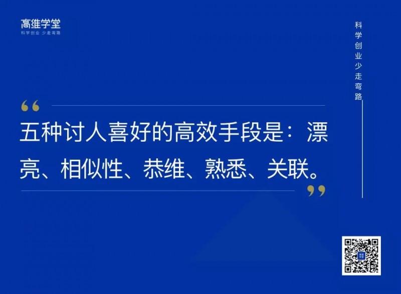 有五种讨人喜好的高效手段:漂亮、相似性、恭维、熟悉、关联。