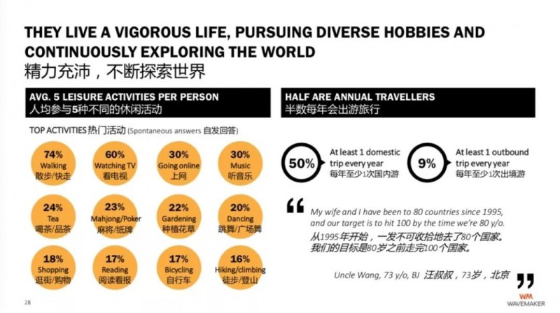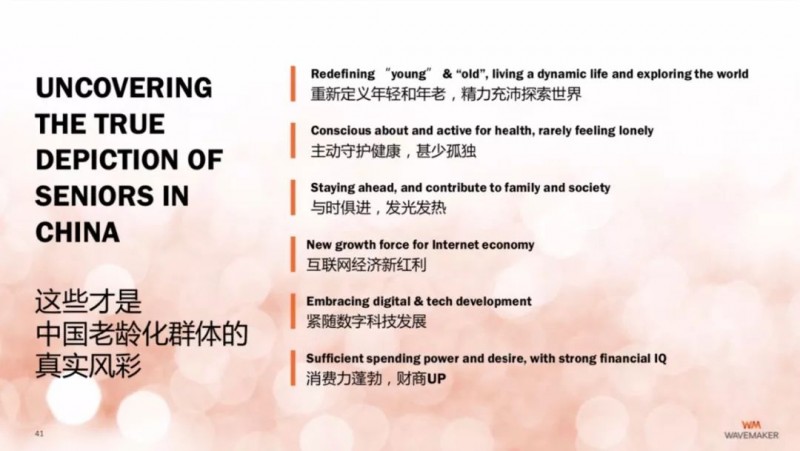 2019年10月,WAVEMAKER蔚迈发布中国老龄化群体系列研究报告《中国老龄化社会的潜藏价值》第一篇章《重新“遇见”中国的老龄化群体》,从打破对老龄人群体的刻板偏见和印象开始,呼吁人们关注老龄化社会的进程以及该群体的需要,尤其在商业层面为老龄人群体设计出更为贴切的产品和服务。