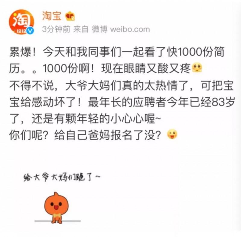2018年,淘宝招募老年体验师上热搜,年薪高达35万至40万,一度让围观群众咂舌。当年轻人还在调侃“原来我也能有成为富二代的一天”,“望父成龙机会到了”时,淘宝已经用数据证明了老年群体的潜力。在那一年,淘宝上共计有3000万老年用户(年龄50岁以上),和年轻人一样,他们也喜欢购买各种好看的衣服,潮流的3C用品。而淘宝的这轮招聘也是为了让淘宝更懂老年人,满足他们这个年龄段对于购物的需求。