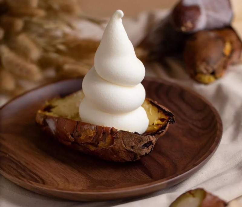 这家店有特别的单品:烤红薯冰淇淋、柿子冰淇淋、日本静冈县蜜瓜雪糕。