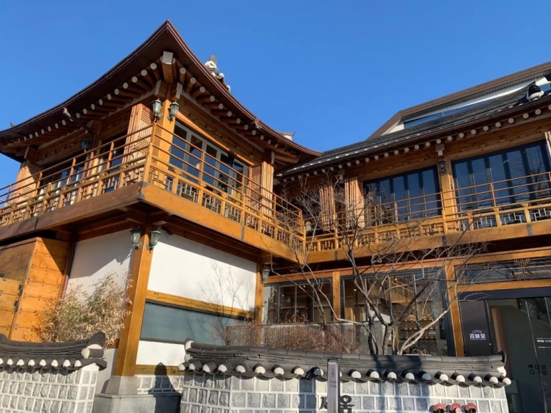 百味堂在韩国几乎遍布各个核心商圈,最特别的一家是位于三清洞的北村韩屋一带,隔壁是blue bottle,MMCA美术馆,对面是重要景点景福宫,在绝佳的地理位置,门店也是传统韩屋设计,双层独栋建筑,二楼四面落地玻璃可以欣赏风景。