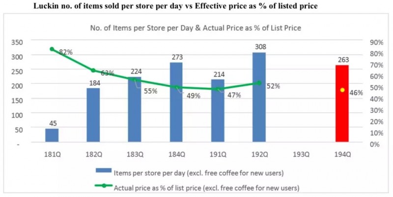 3、每个订单商品数量下降、实际售价被夸大的指控不实。报告中订单收据的来源及真伪、报告的基本方法均无根据。瑞幸咖啡在此期间的单笔订单数量远远高于报告中的数据,且可通过内部系统验证。