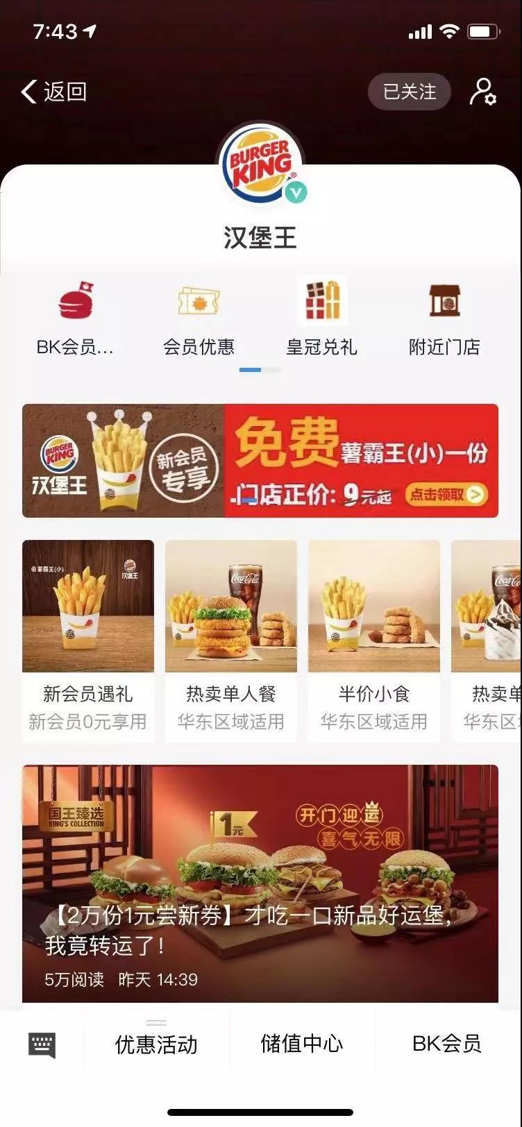 汉堡王率先布局的,是微信小程序,基于微信去中心化的特点,做社交和裂变,推出手机点餐、会员积分等服务。