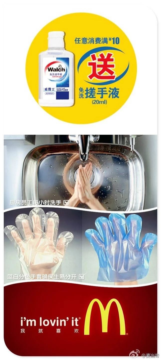 阿慕还在麦当劳微博上扒到一张2013 年“ 早餐消费满 10 元送洗手液”的活动图片,虽然这些“小动作”并不意味着就把餐饮品牌与卫生划上等号,但会在消费者潜意识中释放信号,至少让人感觉这个品牌是“注重卫生”的,甚至不自觉把品牌与“干净卫生”这标签捆绑在一起。