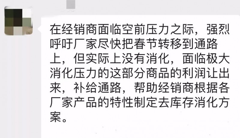 综上来看,由于经销商经营品类、渠道操作不同,这个春“劫”,可谓是如人饮水,冷暖自知。对此,有经销商对食品板哭诉道:今年不流行“太难了”,今年流行“更难了”......此外,也有经销商表示:高筑墙,广积粮,留得青山在,不怕没柴烧,相信挺过去就是春天。最后,一位在此次春“劫”中颇为受伤的经销商发声:望厂商携手,共渡难关!