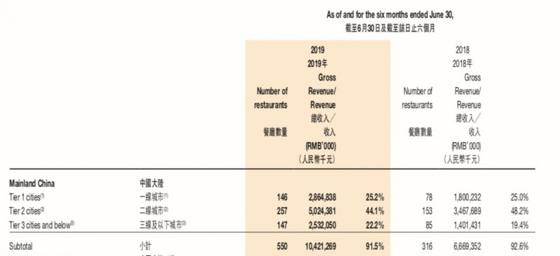 根据海底捞2019年中报,截至2019年6月30日,海底捞在中国大陆地区有550家餐厅,而中国大陆地区门店的营收占了餐厅经营总收入的91.5%。由于海底捞仍在扩张,实际受影响的门店数只会更多。