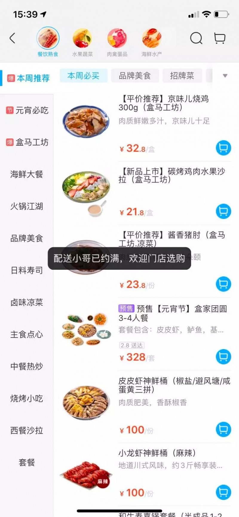 线上订单大增,盒马鲜生的配送员时常是约满状态