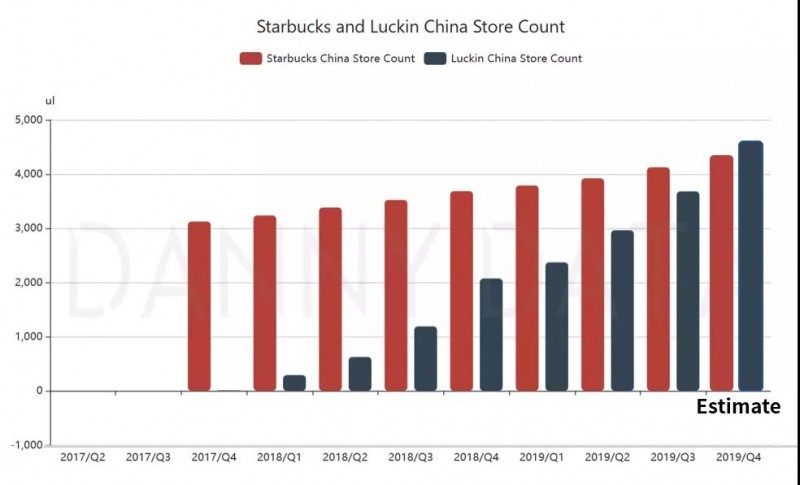 到了2019年底,瑞幸咖啡在中国门店数量已经超过了星巴克: