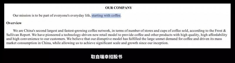 先说瑞幸的短期打法,用一句话来概括:以咖啡作为切入点。正如瑞幸在招股书的使命所说:starting with coffee.
