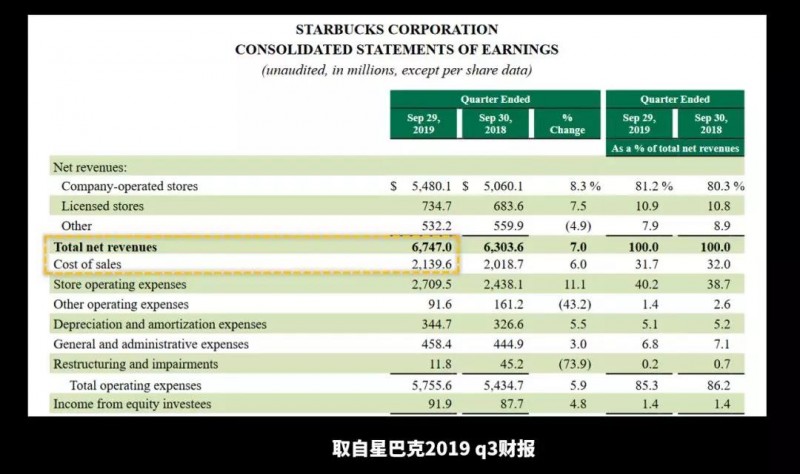 所以下次你再说利润时,需要说明白你指的是哪个利润,比如我说星巴克的毛利润率,而毛利润率指的就是星巴克(收入revenue-成本cost)/收入revenue。