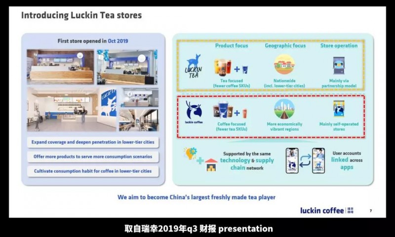 所以这里可以做个简单概括:瑞幸早期快速扩张主要靠小而美的直营快取店,之后的快速扩张靠的是多品类、加盟店。