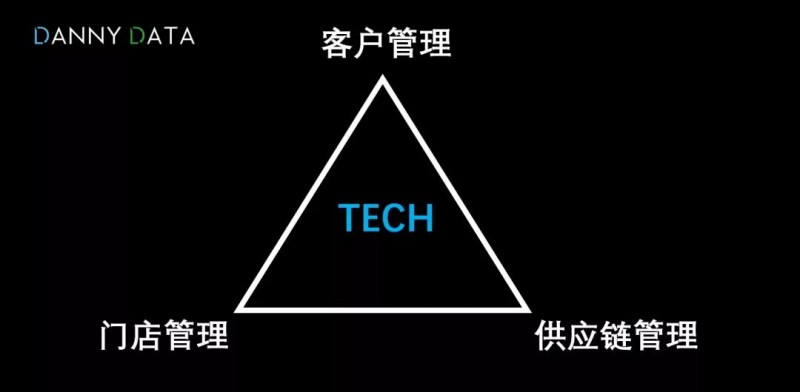 说到底,技术到底对瑞幸的哪些方面起作用呢?可以用一个三角图来概括:客户管理、门店管理和供应链管理,三者需要通过技术形成彼此独立、又和谐统一的正循环。