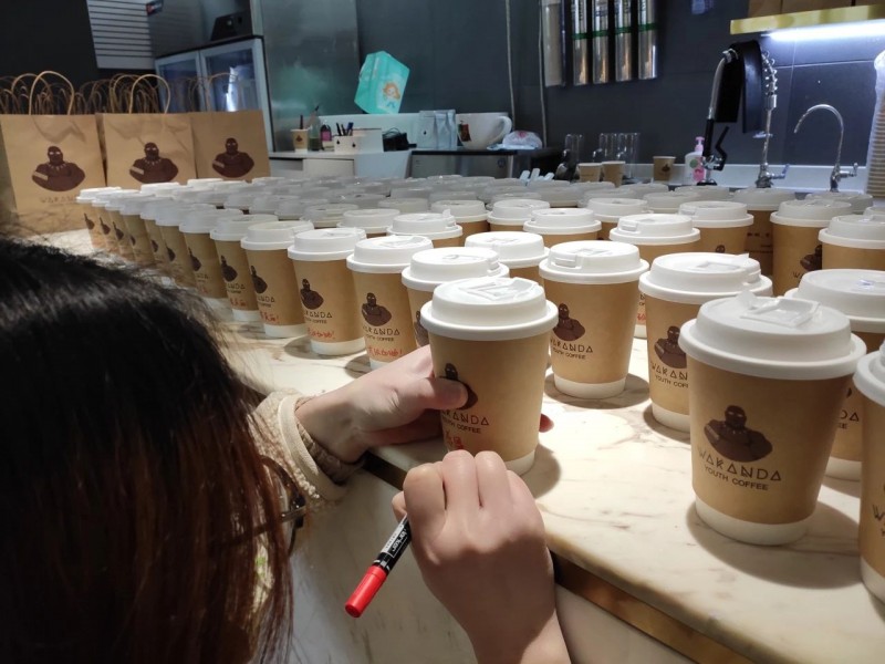 亲自在每一个咖啡杯上手写祝福语是他们的执念,“武汉加油”、“向您致敬”、“有您真好”等等,每一杯都要手写。