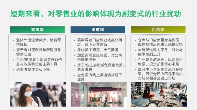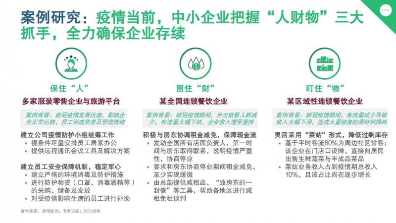 我们看到,受负面影响较大的中小型零售企业,面临“生存问题”时在短期的重点是“确保存续”,在保住“人”、 留住“财”和盯住“物”方面重点发力。