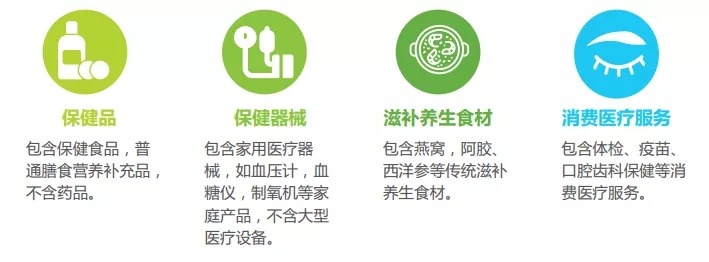 大健康消费主要包括以下四个方面:一是保健品,二是保健器械,三是滋补养生食材,四是消费医疗服务。