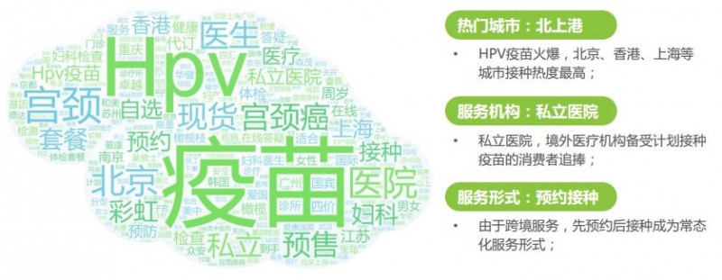 检查、预防、治疗已形成日常化健康管理链条。其中,体检套餐最受北上广深白领的欢迎,并辐射中老年人群;年轻女性预防意识较超前,宫颈癌疫苗被热议,跨境接种常态化;洗补矫正,口腔齿科完善的治疗链条已成型。