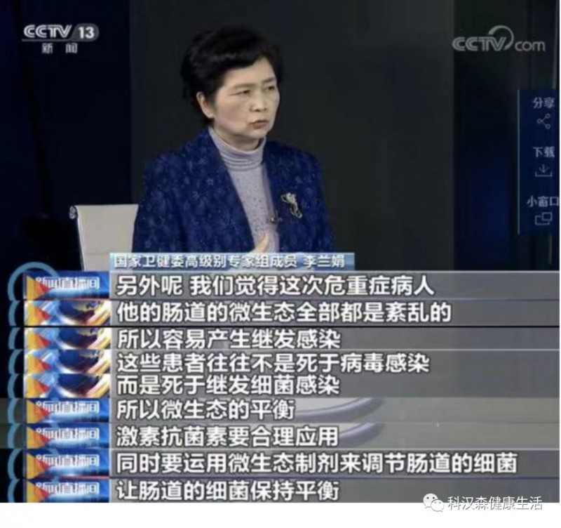 为何将益生菌纳入诊疗方案,国家卫生健康委高级别专家组成员、中国工程院院士李兰娟院士解释到: