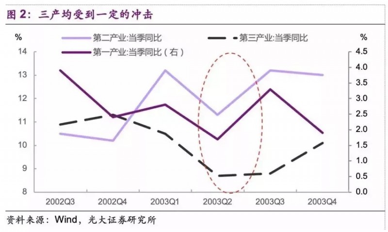 (非典时期,第三产业营收下滑严重)