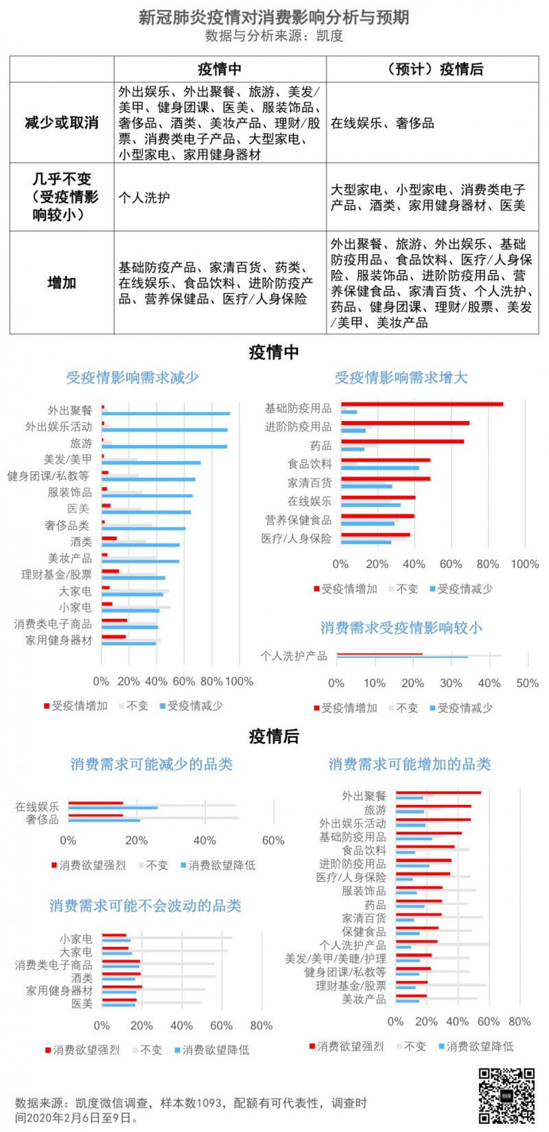 其他有一些与疫情没有直接关联的行业也受到了较小一点的冲击,如聚餐与拜访亲友取消导致57%的消费者减少或取消酒类消费;还有美妆(减少+取消=56%)和服饰(减少+取消=67%)。但数据显示他们会在疫情结束后迎来较有力的反弹消费。