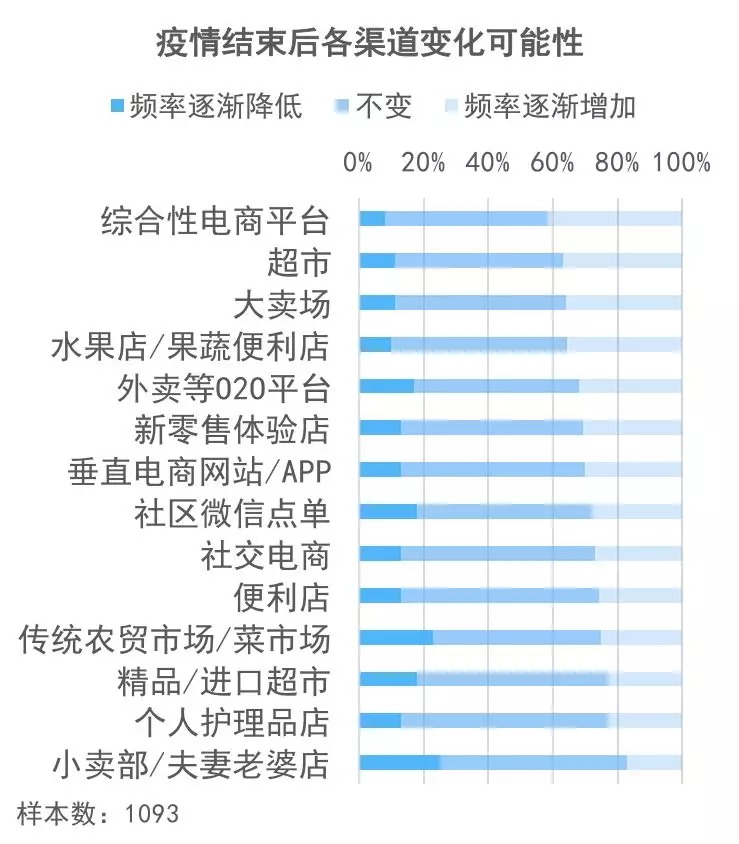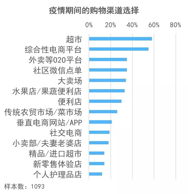 在疫情期间,由于消费者被劝阻不要上街,很多商户延长春节假期,消费者对生鲜食材的购买爆发性增加等原因,零售渠道里新兴渠道变得十分重要。