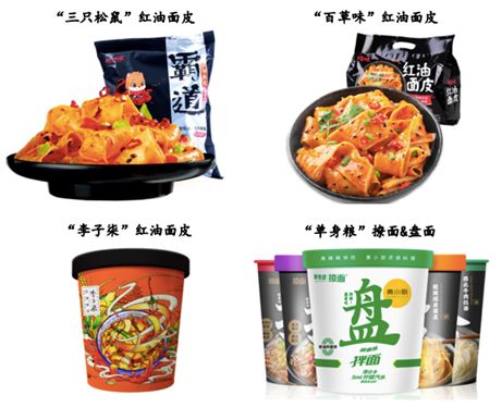 白家食品是国内领先的方便食品集团,旗下有白家陈记、阿宽、川香厨房等多个知名品牌,覆盖方便粉丝、方便米线、复合调味料、非油炸方便面、全料挂面、方便自热米饭、替餐型休闲食品等产品系列,SKU极为丰富。白家食品也是一家老牌的食品集团,核心品牌之一“白家陈记”历时二十年,方便粉丝第一品牌形象深入人心,兼具渠道影响力和各年龄段消费者认知,享誉海内外市场;核心品牌之二“阿宽”定位于新型方便食品品牌,主打18-28岁年轻人群,大单品“红油面皮”凭借新颖的产品设计和高度还原的口味受到年轻消费用户的欢迎,是微博、抖音、B站等平台的长期网红爆品,销售额遥遥领先同行;近期公司还推出了“川香厨房”品牌,借助已有供应链优势布局消费场景更为丰富的复合调味料产品。