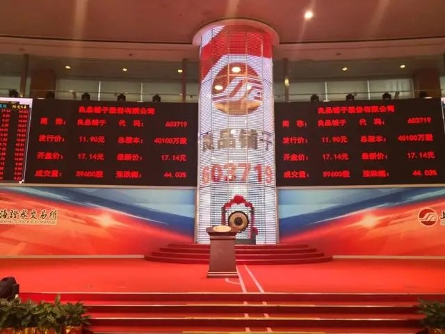 “5、4、3、2、1,咚……热烈祝贺良品铺子成功上市。”