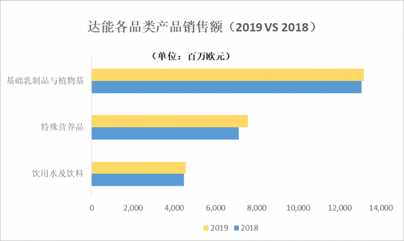 2019年,植物基产品继续为达能赋能,总体销售额19亿欧元,占基础乳制品及植物基板块销售的14%。
