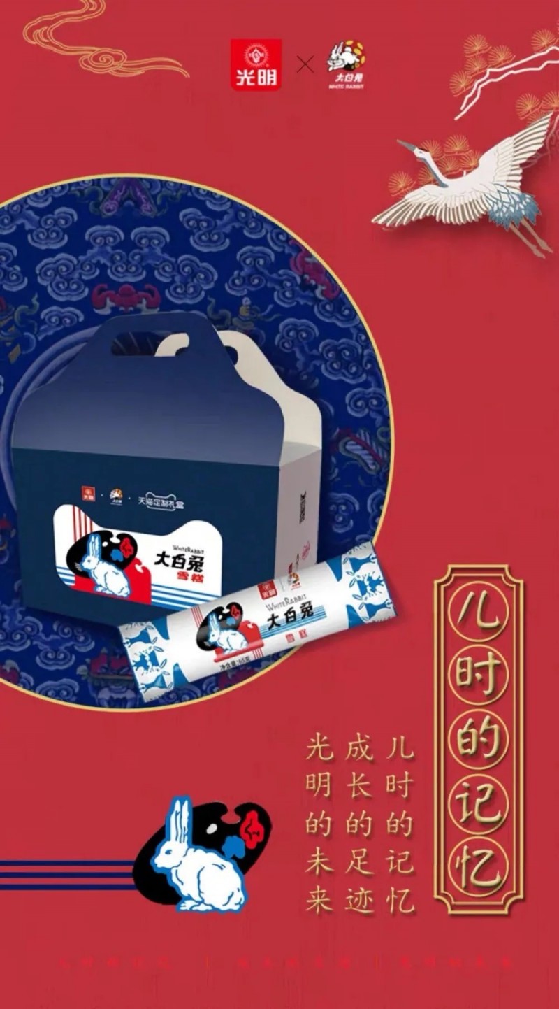 从去年开始就动作频频的光明和大白兔,可谓是强强联手,每次出新品都能掀起全网热议,称得上老品牌翻红的成功案例。