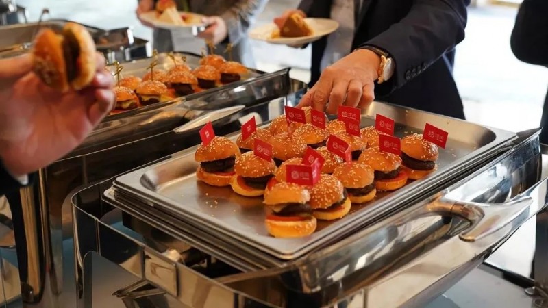 第二十届瑞银大中华研讨会上展示的珍肉人造肉汉堡