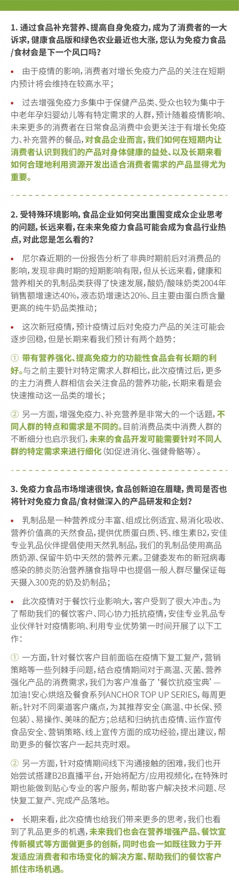 带有营养强化,提高免疫力的功能食品会有长期的利好,安佳专业乳品专业伙伴坚持研发好吃、好看并有原料保证的西式或中西融合产品。