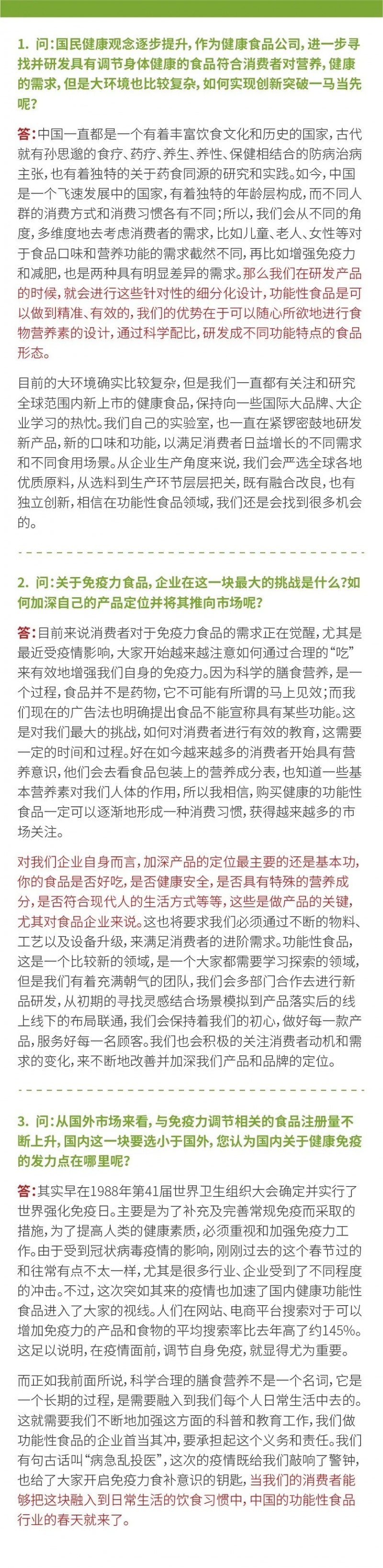 长期来看,市场的种种表现也给我们带来更多的思考,我们也看到了免疫力食品更多的机遇,预计未来更多的消费者在日常食品消费中会更关注于有增长免疫力、补充营养的餐品。餐食企业结合自身实力开发适应消费者和市场变化的解决方案,努力寻找创新突破点,抓住市场机遇,才是当下最应该考虑的事。